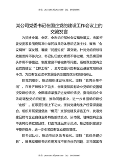某公司党委书记在国企党的建设工作会议上的交流发言.docx