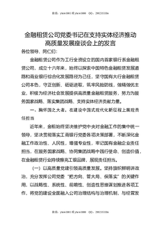 金融租赁公司党委书记在支持实体经济推动高质量发展座谈会上的发言.docx