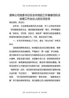 国企烟草公司党委书记在全市党的工作暨模范机关创建工作会议上的交流发言.docx