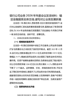 银行公司业务2026年年度会议发言材料:锚定金融服务实体主线,谱写对公业务发展新篇.docx