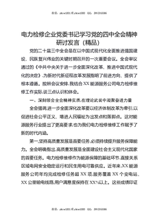 电力检修企业党委书记学习党的四中全会精神研讨发言(精品).docx