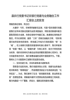 县农行党委书记在银行党建与业务融合工作汇报会上的发言.docx