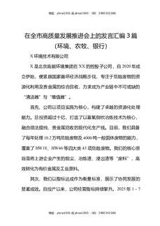 在全市高质量发展推进会上的发言汇编3篇(环境、农牧、银行).docx