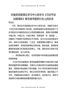 在集团党委理论学习中心组学习《治国理政》第五卷专题研讨会上的发言.docx