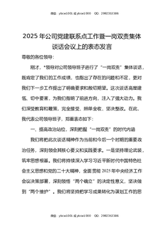 在2025年公司党建联系点工作暨一岗双责集体谈话会议上的表态发言.docx