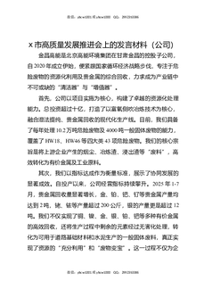 X市高质量发展推进会上的发言材料(公司)1.docx