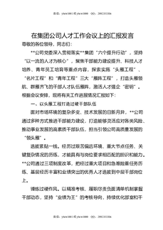 在集团公司人才工作会议上的汇报发言.docx