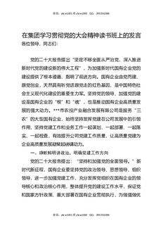 在集团学习贯彻党的大会精神读书班上的发言.docx