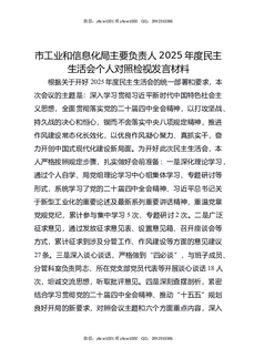 市工业和信息化局主要负责人2025年度民主生活会个人对照检视发言材料.docx