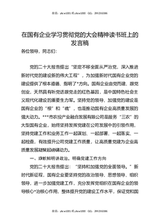 在国有企业学习贯彻党的大会精神读书班上的发言稿.docx