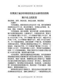在黑龙江省涉农高校校友企业家项目招商推介会上的发言.docx