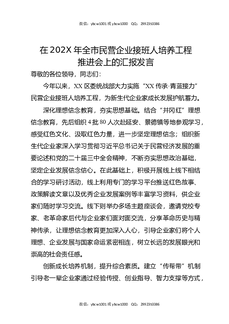 在202X年全市民营企业接班人培养工程推进会上的汇报发言.docx