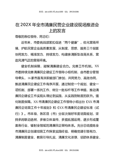 在202X年全市清廉民营企业建设现场推进会上的发言.docx