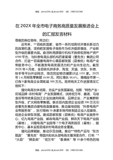 在202X年全市电子商务高质量发展推进会上的汇报发言材料.docx