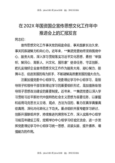 在202X年国资国企宣传思想文化工作年中推进会上的汇报发言.docx