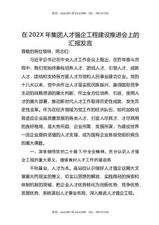 在202X年集团人才强企工程建设推进会上的汇报发言.docx