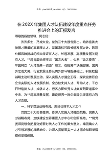 在202X年集团人才队伍建设年度重点任务推进会上的汇报发言.docx