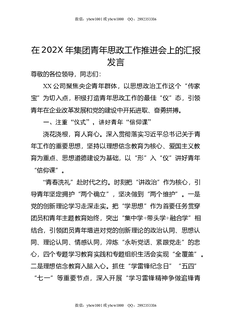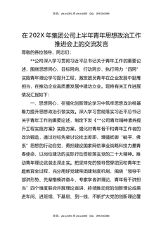 在202X年集团青年思政工作推进会上的汇报发言.docx