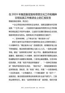 在202X年集团基层宣传思想文化工作和精神文明实践工作推进会上的汇报发言.docx