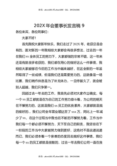 202X年会董事长发言稿9.docx