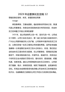 202X年会董事长发言稿12.docx