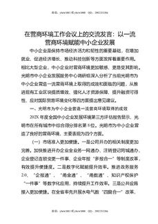 在营商环境工作会议上的交流发言:以一流营商环境赋能中小企业发展.doc