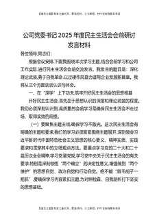 公司党委书记2025年度民主生活会会前研讨发言材料.docx