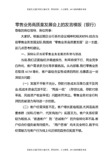 零售业务高质量发展会上的发言模版(银行).docx