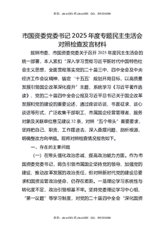市国资委党委书记2025年度专题民主生活会对照检查发言材料.docx