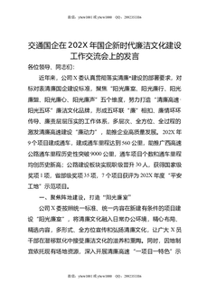 交通国企在202X年国企新时代廉洁文化建设工作交流会上的发言.docx