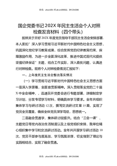 国企党委书记202X年民主生活会个人对照检查发言材料(四个带头).docx