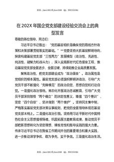 在202X年国企党支部建设经验交流会上的典型发言.docx