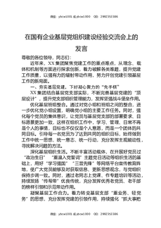 在国有企业基层党组织建设经验交流会上的发言.docx