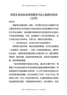 在民主生活会会前专题学习会上的研讨发言(公司).docx