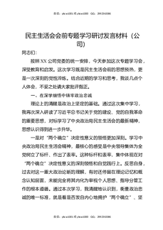 民主生活会会前专题学习研讨发言材料(公司).docx