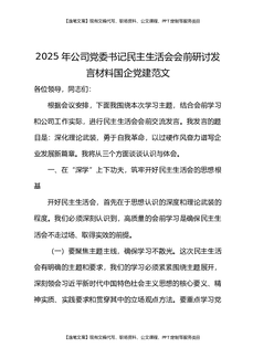 2025年公司党委书记民主生活会会前研讨发言材料国企党建范文.docx