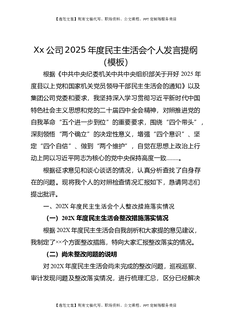 XX公司2025年度民主生活会个人发言提纲(模板).docx