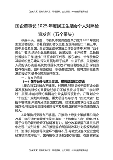 国企董事长2025年度民主生活会个人对照检查发言(五个带头).docx