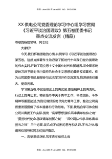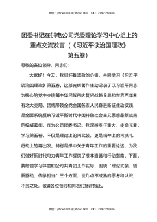 XX供电公司党委理论学习中心组学习贯彻《总书记谈治国理政》第五卷团委书记重点交流发言(精品).docx