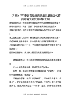 (7篇)XX市民营经济高质量发展暨优化营商环境大会发言材料汇编.docx