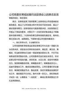 公司党委在常规巡察约谈反馈会上的表态发言.docx