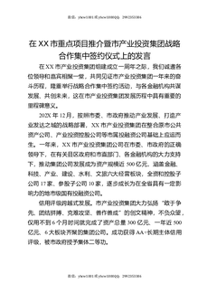 在XX市重点项目推介暨市产业投资集团战略合作集中签约仪式上的发言.docx