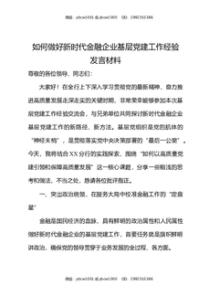 如何做好新时代金融企业基层党建工作经验发言材料.docx