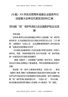 (6篇)XX市优化营商环境暨企业服务年行动部署大会单位代表发言材料汇编.docx