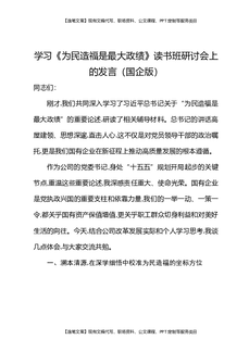 学习《为民造福是最大政绩》读书班研讨会上的发言(国企版).docx