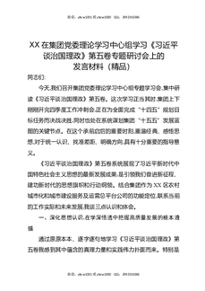 XX在集团党委理论学习中心组学习《总书记谈治国理政》第五卷专题研讨会上的发言材料(精品).docx