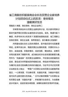 省工商联纺织服装商会会长在民营企业家培养计划启动仪式上的发言:使命驱动温暖美好生活.docx