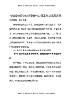 市城投公司企业纪委案件办理工作交流发言稿.docx