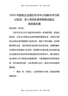 2025年国有企业理论学习中心组集中学习研讨发言:深入贯彻改革思想推动国企高质量发展.docx