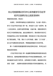 在公司党委理论学习中心组专题学习习近平经济文选研讨会上的发言材料.docx